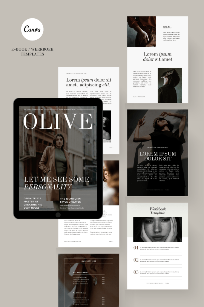 Vogue style, high class en trendy. Deze templateset is te gebruiken als E-book, magazine of werkboek. De pagina’s volledig aan te passen in jouw eigen stijl, kleuren & fonts. Inclusief Canva training en stap voor stap uitleg. Makkelijker kan niet!