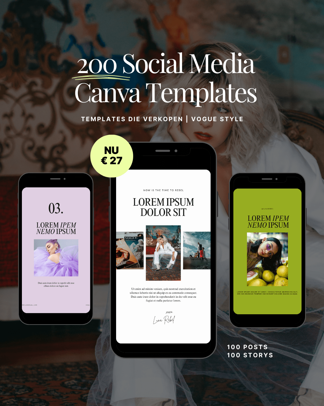 Wij hebben 100 social media posts visuals + 100 story visuals voor je ontworpen.