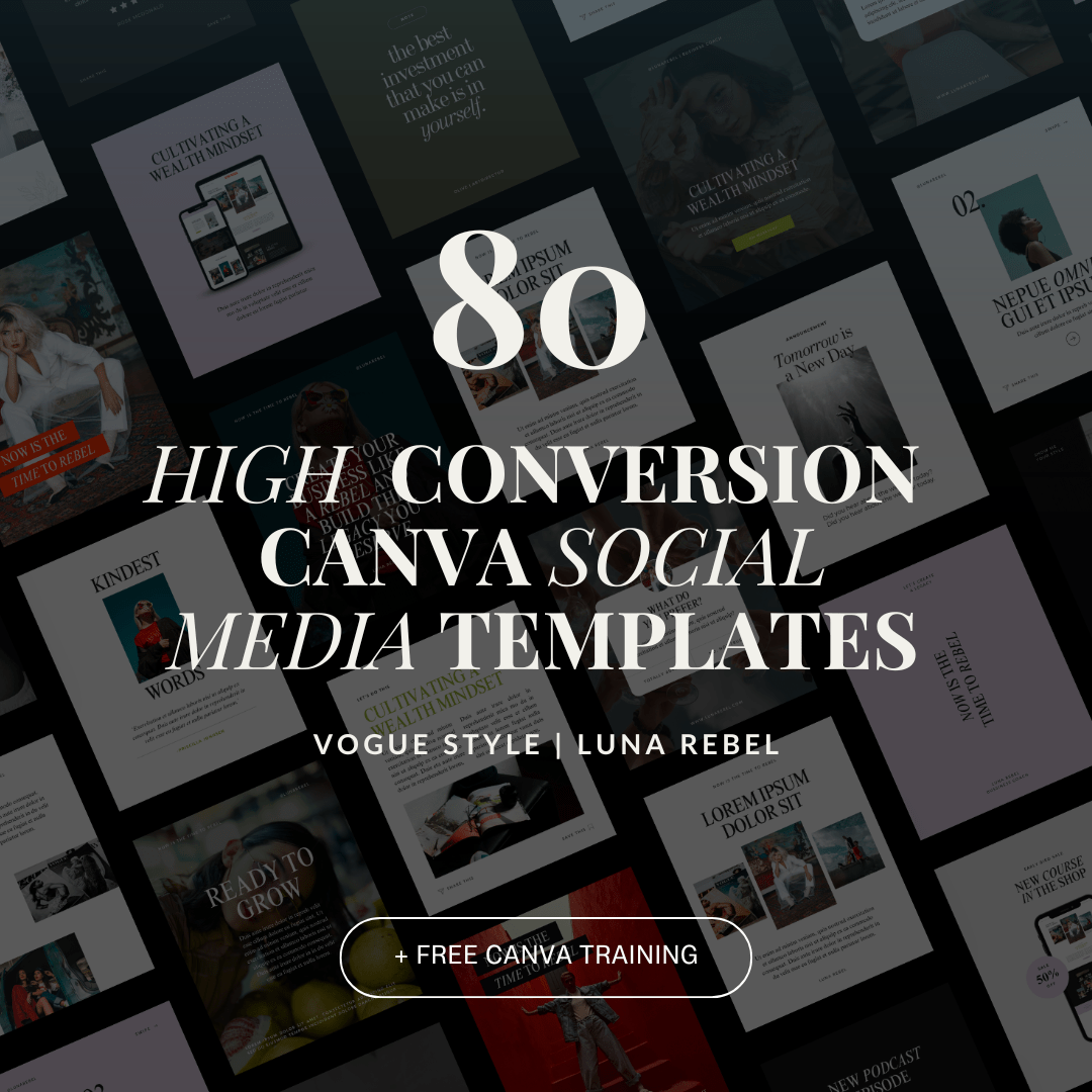 Vogue style, high class and trendy. This social media template set can be fully customized in Canva to your own style, colors & fonts. Including Canva training and step-by-step explanation. It couldn’t be easier!